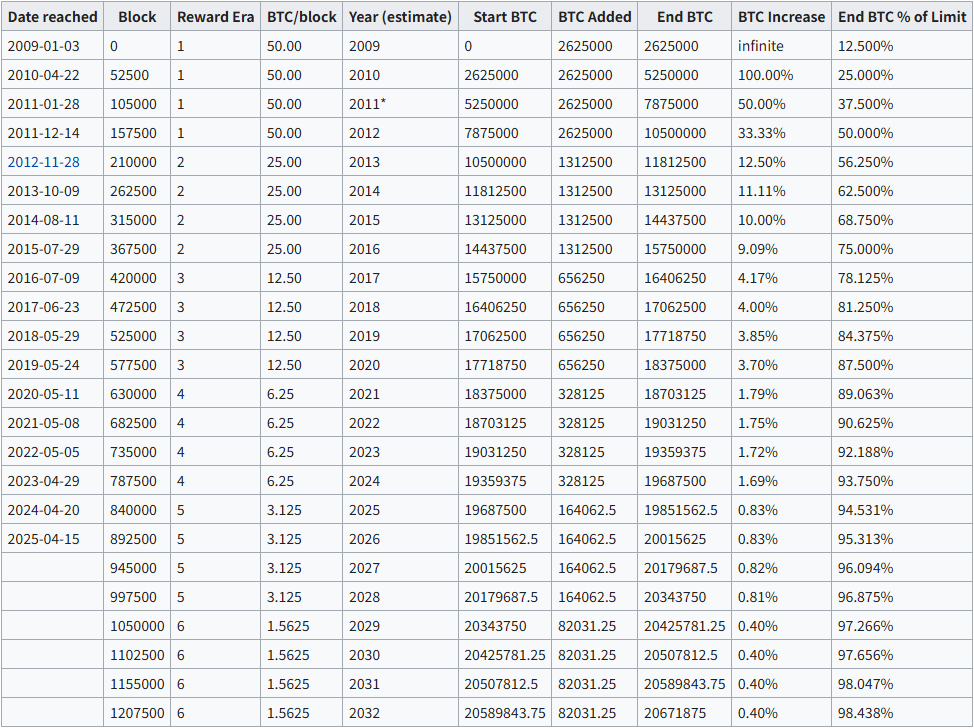 At this point, more than 93.8% of all Bitcoin that will ever exist had already been issued, underscoring the diminishing absolute impact of future halvings while increasing their relative importance in percentage terms.