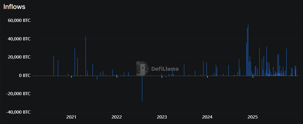 Figure 3: Bitcoin Treasury Inflows & Outflows Trend (2021-2025)