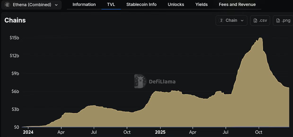 Since the “10/11 market shock,” Ethena’s synthetic stablecoin USDe has seen its market capitalization shrink by nearly half, with net outflows of approximately $8.3 billion. According to CoinMarketCap, USDe’s market cap stood close to $14.7 billion as of October 9, but declined to around $6.4 billion within just over two months.