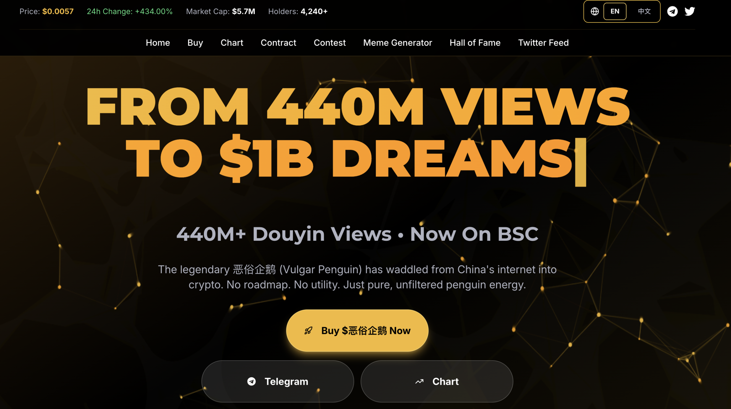 Soon, the image was minted into a token. In early 2025, an anonymous account deployed a contract on BNB Chain under the name Vulgar Penguin (VULGAR). There was no roadmap, no whitepaper, no investor deck—only a meme. Within a week thousands of wallet addresses were trading it. The humor of the idea became the reason to join. For many, the name itself—“vulgar,” direct and unpolished—was a declaration of independence from the seriousness that dominates crypto culture.