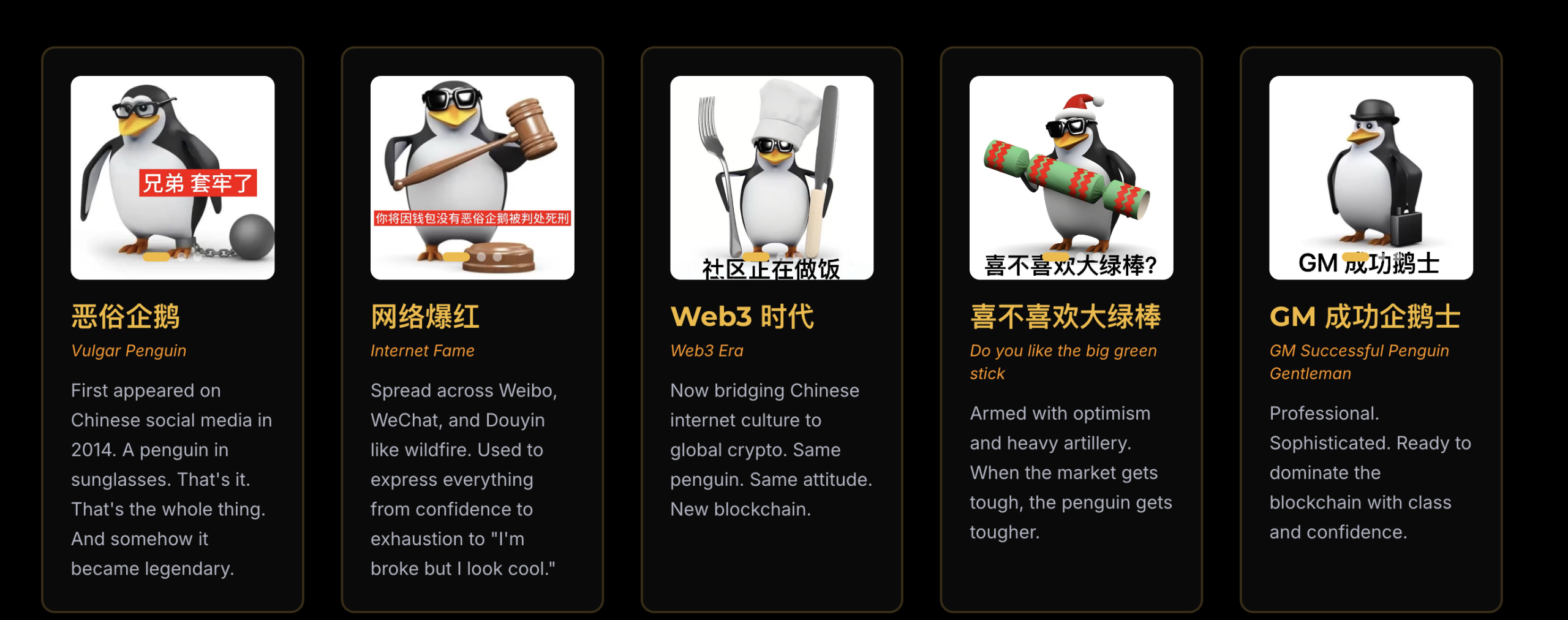 By mid-2025 the community began to think beyond memes. The project’s official site started listing new goals: an NFT identity collection, a small GameFi prototype, and cross-chain expansion. The planned game would allow players to control penguin avatars, earning tokens by completing tasks and spending them on upgrades. NFTs would serve as badges of membership and future governance rights.