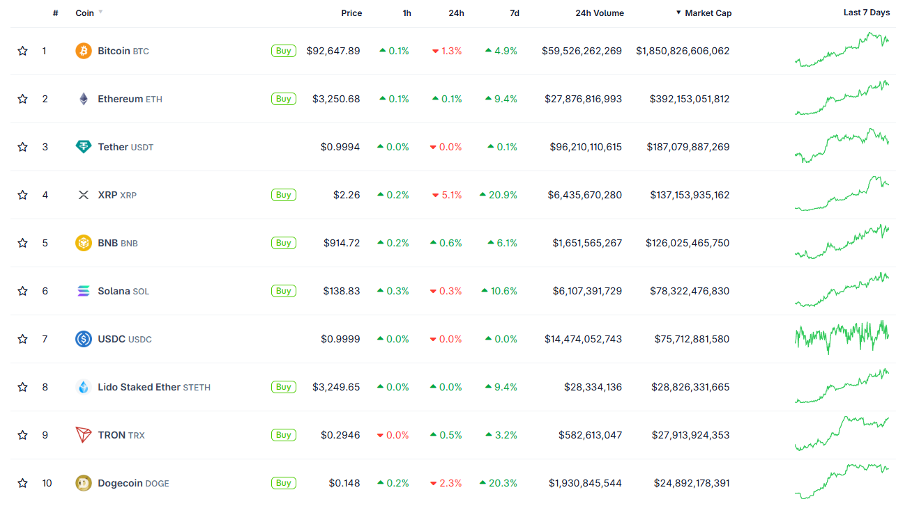 Figure 1: Top Market Cap Coins