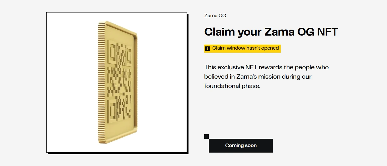 In addition, the OG NFT minting page will open soon. Early participants should check eligibility once it opens (link: https://www.zama.org/nft/og).