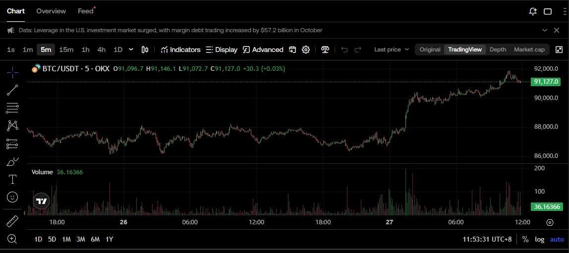 Against this policy backdrop, Bitcoin has once again become a real-time sentiment gauge. Over the past several days, BTC has seen renewed volatility, initially pulling back alongside broader risk assets before gradually recovering as expectations of a December rate cut gained traction.