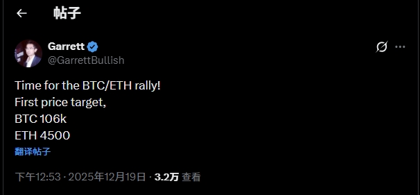 Garrett Jin’s views carry additional weight due to his prior positioning. In October, he publicly disclosed rotating more than $4.2 billion worth of Bitcoin into Ethereum, a move that drew widespread attention. At the time, he stated that both BTC and ETH were poised for a strong rally, citing price targets of $106,000 for Bitcoin and $4,500 for Ethereum.