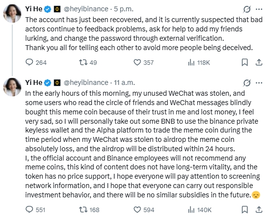 The incident in which Binance executive Yi He’s social media account was hacked and triggered a meme-coin surge reveals systemic risks in the crypto industry across three dimensions: weak security at social entry points, fragile meme-coin structures, and insufficient user risk awareness.
