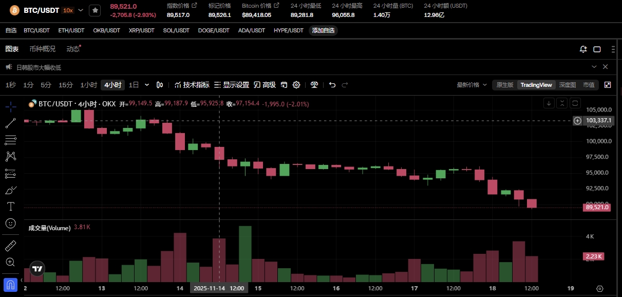 Since November 14, BTC has shown a clear pattern: lower highs, weaker rebounds, and gradually expanding supply. If the trend continues, traders may begin shifting attention to deeper structural support zones rather than expecting a rapid recovery.