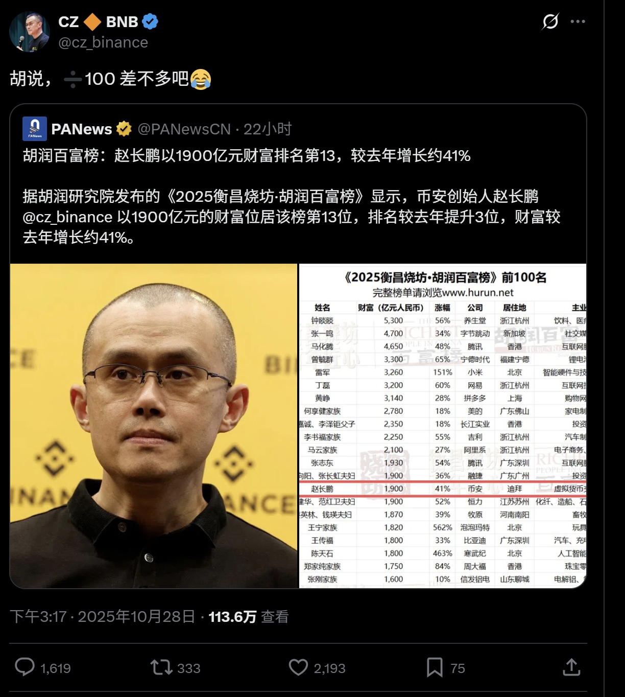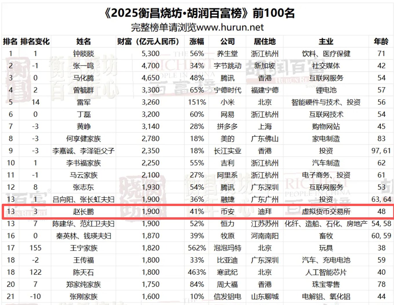 When the 2025 Hurun Rich List was released on October 28, it stirred waves across both traditional finance and crypto communities.