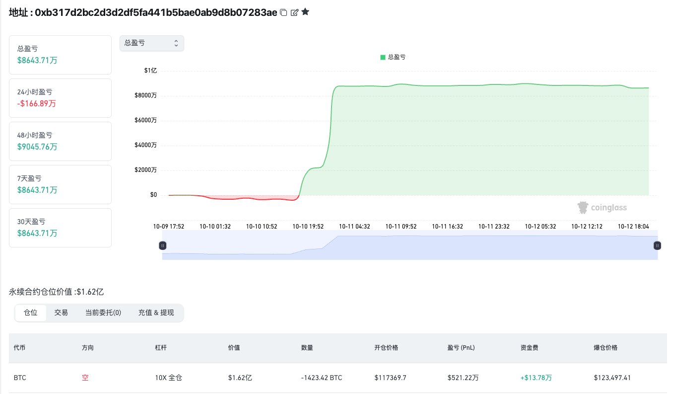 In the days leading up to the crash, crypto markets were already fragile. Volatility had been rising since early October, yet few anticipated the magnitude of the coming drop. Between October 9 and 10 (UTC+8), several monitoring accounts on X flagged unusually large BTC and ETH shorts across major derivatives platforms. These trades were opened discreetly but coincided suspiciously with upcoming political events on the U.S. calendar.