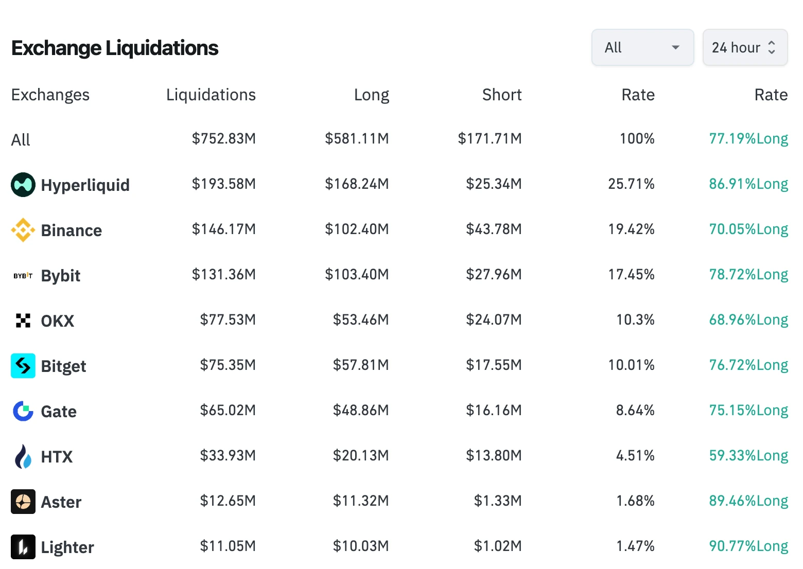 Binance’s liquidation data feed is subject to a rate limit of at most one update per second. As a result, platforms such as Coinglass may experience minor delays when capturing real-time figures.