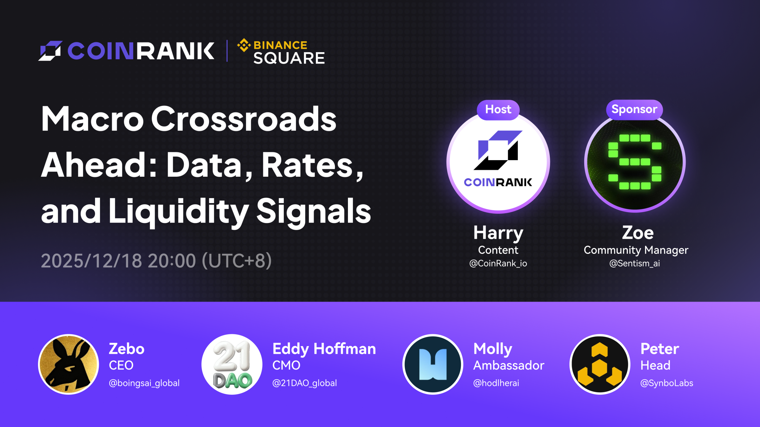 This shift was at the center of CoinRank’s AMA “Macro Crossroads Ahead: Data, Rates, and Liquidity Signals for Crypto,” hosted on December 18, 2025. Builders, community leaders, and AI-driven strategy operators came together to discuss how macro data, central bank policy, and liquidity conditions are shaping the next phase of the crypto market.