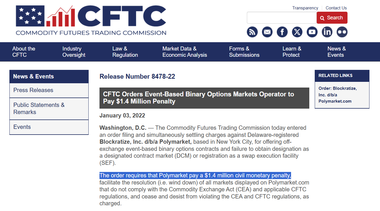 CFTC Orders Event-Based Binary Options Markets Operator to Pay $1.4 Million Penalty | CFTC
